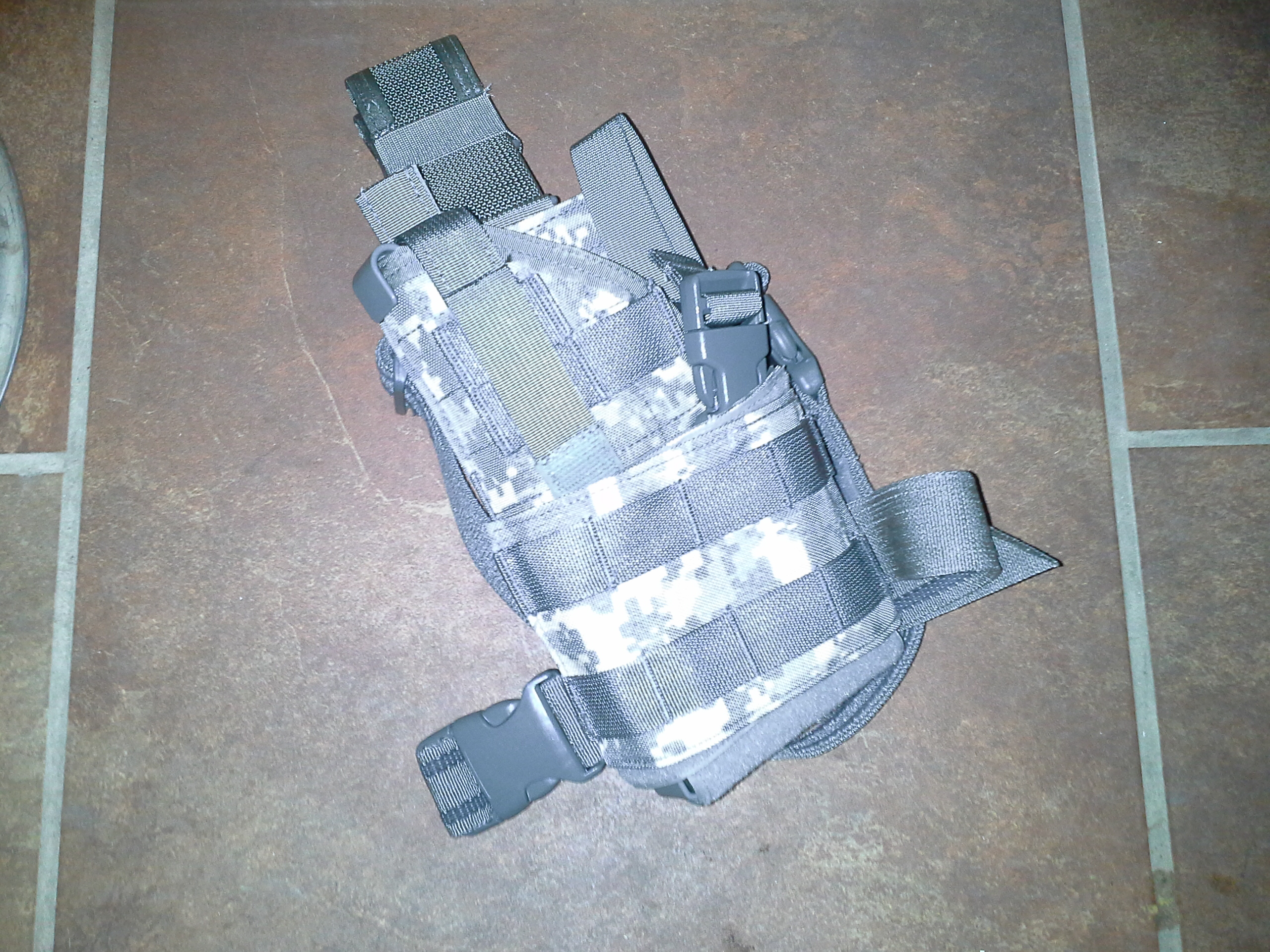 Drop leg/thigh style Beretta holster in ACU camo pattern. Superbly made and designed high end holster, new in the wrap.