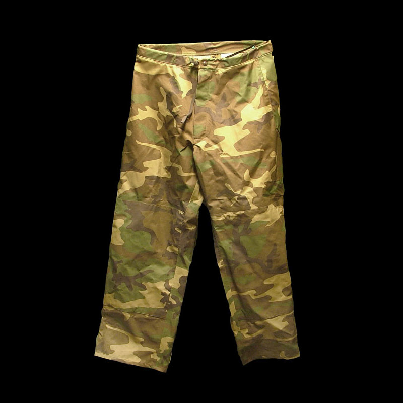 Wind proof as well as water proof, and Gore-Tex breaths. Woodland camo or desert pattern. Gore-Tex have slash pockets and zippered legs for ease on getting them on over boots.